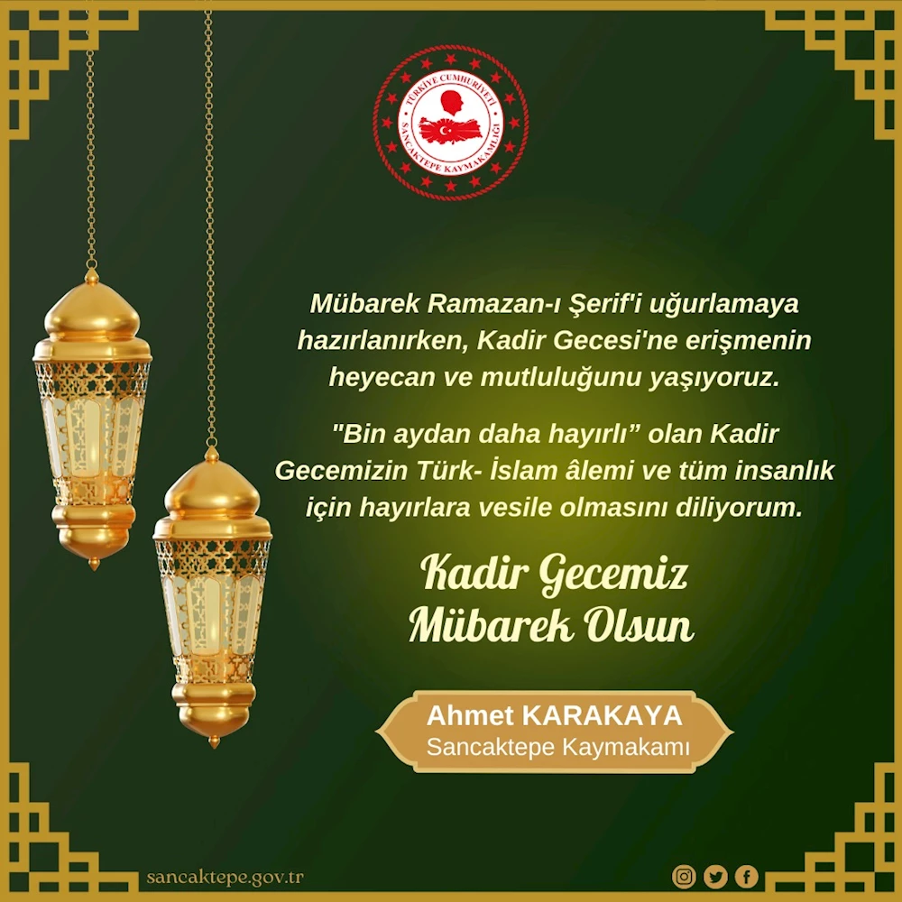 Sancaktepe Kaymakamı Ahmet Karakaya, Kadir Gecesi mesajı yayınladı.