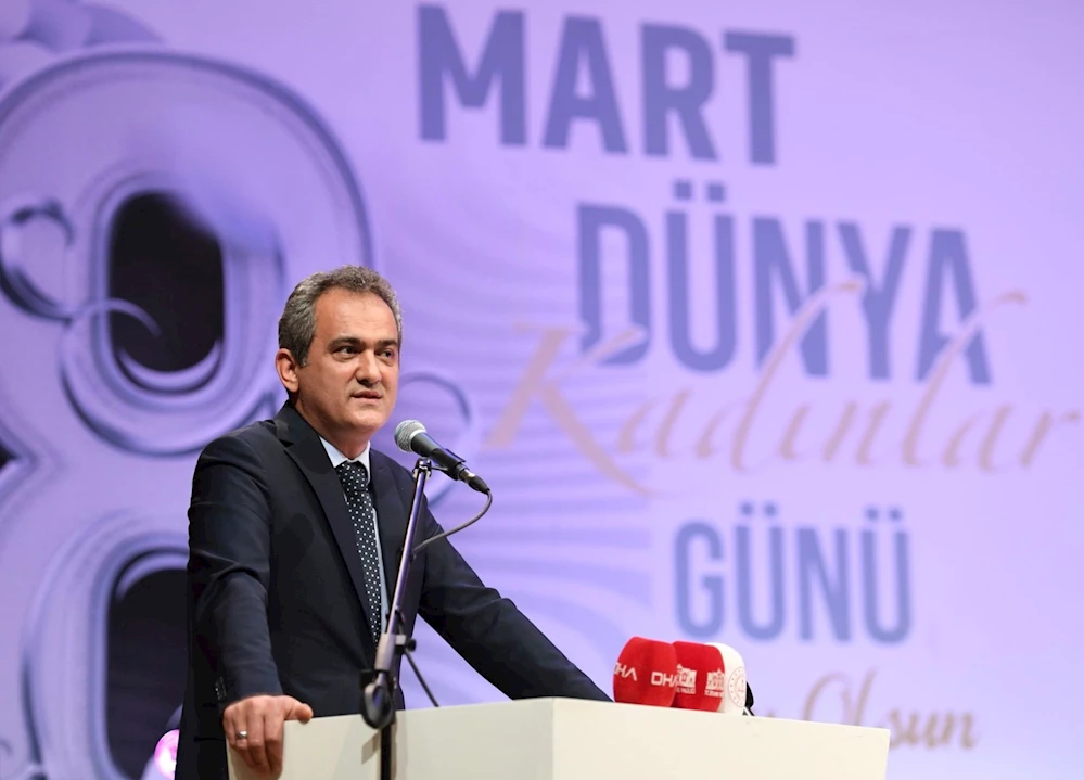 “'Bugün 1,2 milyon öğretmenimiz var ve bunun yüzde 59'u kadın öğretmenlerimizden oluşuyor. Yani son 19 yıl, eğitimde erişimin tüm kademelerde arttığı ama aynı zamanda eğitimin demokratikleştiği en önemli dönem oldu. Bir taraftan başörtüsü, katsayı uygulamasının yol açmış olduğu eğitim sistemindeki problemler çözülürken diğer taraftan da kız çocuklarımızın, kadınlarımızın eğitimle buluşmaları güçlendirildi. Hatırlayın o günlerde başörtüsünden dolayı yurt dışına giden gençlerimiz vardı. Bunlar çok kolay bir şekilde unutuldu. Artık Türkiye, toplumunun tüm kesimleriyle barışık, tüm vatandaşlarına eğitim hizmeti sunmaktan mutluluk duyan bir ülke. Elbette böylesine bir seferberliği gerçekleştirmek için güçlü bir liderliğe ihtiyaç var. İşte bu lider de Sayın Cumhurbaşkanımız Recep Tayyip Erdoğan. Kendilerine son 20 yıldaki eğitimdeki bu devasa seferberliğe katkılarından, desteklerinden, her yıl bütçede en büyük payı eğitime ayırmasından dolayı hem şahsım hem de millî eğitim camiası adına şükranlarımı sunuyorum.'
