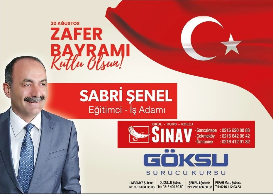 Sancaktepe Sınav Okullarının Kurucusu Eğitimci, Yazar ve İş İnsanı Sabri Şenel, 30 Ağustos Zafer Bayramı'nın 101. Yıl Dönümünü bir mesajla kutladı.