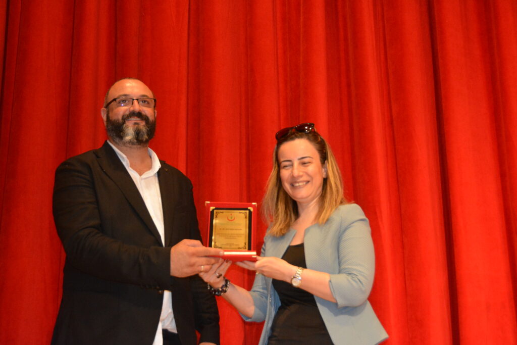 Erenköy Ruh ve Sinir Hastalıkları Eğitim ve Araştırma Hastanesi Başhekimi Do. Dr. Semra Baykara, Sancaktepe Kaymakamı Ahmet Karakaya’ya teşekkür plaketi sundu.